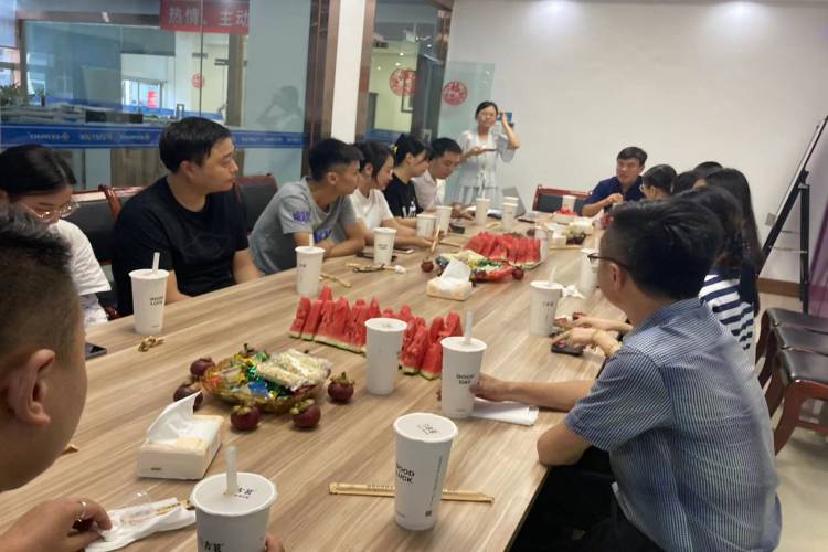 會議室內,大家圍坐在桌旁,零食、堅果、水果、點心、奶茶一應俱全。交流會伊始,龔總首先對公司新員工的加入表示熱烈的歡迎,希望新員工能快速熟悉公司成員及結構,員工之間加強交流,從而促進各部門之間的配合。張總則是從員工個人職業生涯規劃的角度出發,闡述了“能力比薪酬重要、勤奮比能力重要、忠誠比勤奮更重要”的觀點,表達了公司公司高層對員工的殷殷期盼和諄諄教誨。