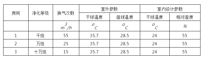 現以某電子廠潔凈室夏季一次回風系統為例,設計參數見下表: