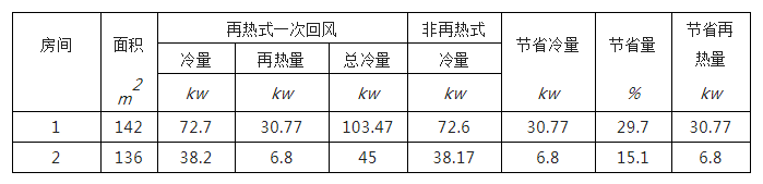 兩種空氣處理方式能量消耗對比如下表所示: